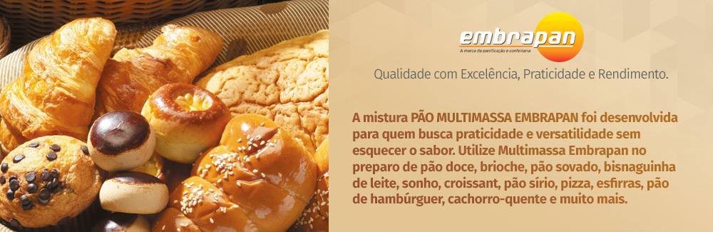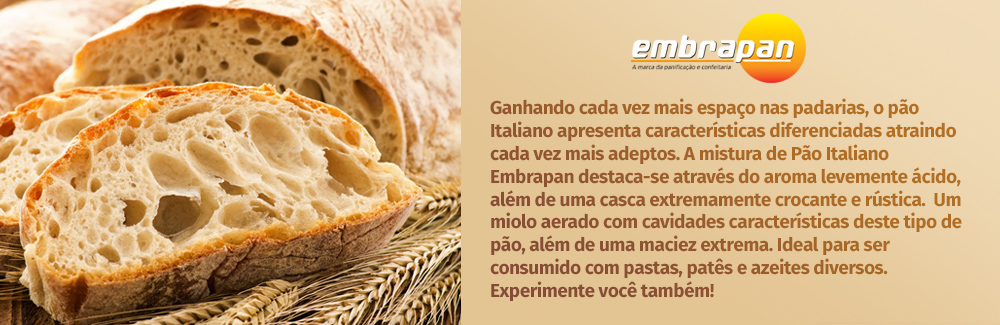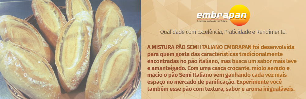 DESCRIÇÃO: Mistura para o preparo de Pão Semi Italiano CÓDIGO DE BARRAS:789859908080 APRESENTAÇÃO DO PRODUTO: embalagem de 5 kg VALIDADE: 6 meses ARMAZENAMENTO: Armazenar em local seco, ventilado, ao abrigo do sol e umidade. RECEITA: Mistura Semi Italiano: 5kg Água Potável (2 a 4°C): 2.500L Fermento Biológico Fresco: 150gr ou Fermento Bio Instantâneo: 50gr *(De acordo…